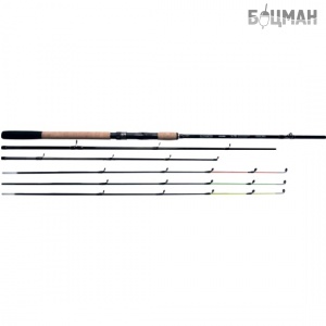 Integro представляет собой серию бюджетных фидерных удилищ c современным и эффектным внешним видом, при невысокой стоимости серия способна удовлетворить самых требовательных рыболовов. Integro имеет очень широкую размерно-тестовую линейку - от 240 до 420 см от 10 до 180 г, которая позволяет подобрать оптимальное удилище для любых условий, подойдет как для стоячей воды и использования легких кормушек, так и для водоемов с сильным течением и самых тяжелых весов.Фидер изготовлен из комбинации материалов - усиленный комель выполнен из графита IMF, верхние колена - из высокомодульного графита, что делает удилище очень прочным с правильным распределением нагрузки при забросе, обеспечивающим отличную посылистость и необходимую жесткость.Фидер оснащен современным катушкодержателем, рукоять выполнена из комбинации пробки и EVA, пропускные кольца SIC, в комплекте идут три взаимозаменяемые вершинки различной жесткости.