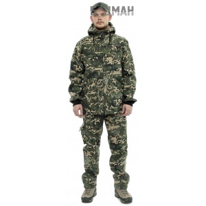 Прямая модель, удлиненная куртка. На Куртке пять карманов. Отдельный карман на молнии с москитной сеткой. Молния 2 бегунка Т8. Трикотажные манжеты на рукавах. Регулировка на капюшоне по овалу лица. Регулировка по низу куртки. Регулировка низа брюк. Брюки пояс на резинке. Шлевки для ремня. Брюки два кармана+ карман накладной объемный.