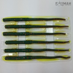 Sprut Akemi – это мягкая съедобная приманка, обладающая длинным ребристым телом червя с утолщением передней части в котором можно эффективно зафиксировать жало крючка.Сама по себе данная приманка пассивная, однако, пропорции ее тела существенно повышают выразительность игры и ее активность во время анимации частыми колебаниями и рывками.Если оснастить Sprut Akemi самыми легкими грузами, во время проводки приманка будет как бы парить в толще воды.Такая анимация с высокой вероятностью заинтересует хищников, обитающих в верхних слоях воды.Наиболее подходящая оснастка для этой резины – это шарнирная, а так же дроп-шот и вэки.На такую приманку отлично реагирует крупный окунь, щука, ротан, судак и берш.