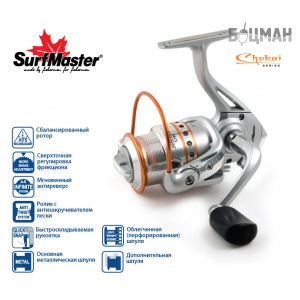 Особенности: Облегчённый ротор и корпус катушки.Силовой агрегат выполнен из пары твердосплавный алюминий-бронза.Усиленная полая дуга.Ролик лесоукладывателя с антизакручивателем лески, защитным покрытием и подшипником.Мгновенный анти реверс.Дополнительная шпуля.Основная металлическая шпуля.Облегченная (перфорированная) шпуля.Быстроскладываемая рукоятка.Сверхточная регулировка фрикциона.