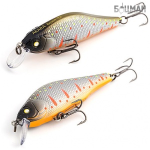 Akara Expert 70F - воблер класса шэд (Shad). Имеет довольно высокое тело, сплюснутое с боков и небольшую лопасть. Обладает активной собственной игрой на равномерной проводке и отлично подходит для рывковой (твичинговой) проводки. Лучше всего проявляет свои уловистые свойства на мелководных реках и озерах, неглубоких участках водохранилищ и крупных рек. Основные трофеи это щука и окунь, но и другие хищные и полухищные рыбы не смогут устоять пред соблазнительной игрой приманки. Воблер Akara Expert 70F оснащен магнитной системой дальнего заброса (Magnetic Cast Sistem MCS). Крючки из высокоуглеродистой стали. Тип плавучести – плавающий (Floating). Заглубление от 0 до 1,5м.