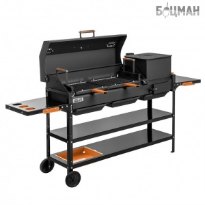 Мангал оснащен всем необходимым для комфортного приготовления блюд на открытом огне: жаровней с перфорированным дном, 3 съемными зольниками, 2 боковыми столиками (с подстаканниками и без), полкой сплошной и полкой с лотком, держателем инструментов, крышкой-гриль, угольным лифтом, 2 решетками-гриль, колесами и боковой ручкой для удобства перемещения мангала.А также в комплектацию входит подставка под казан с конфоркой для приготовления разнообразных блюд. В жаровне предусмотрены отверстия в днище, которые обеспечивают доступ воздуха к углям, что значительно облегчает их розжиг и способствует их быстрому разгоранию.На продольных стенках жаровни выполнены ребра жесткости, которые практически исключают деформацию мангала при нагреве.Жаровня мангала окрашена термостойкой краской, которая выдерживает нагрев до 1000°С. Фигурные вырезы в стенках жаровни (по краю) дают возможность регулировать положения шампуров. Вмещает: 12 шампуров*/2 решетки-барбекю (L-400 мм); казан* не менее O 360 мм; оптимально для казанов на 6 -8 литров; до 5 кг. мяса. (*шампуры и казан в комплект не входят) Мангалы HELIOS SMART производятся на самом современном оборудовании TRUMPF (Германия), применяя лучшие материалы и новейшие технологии — лазерную резку, высокоточную гибку металла и координатно-пробивную штамповку, чтобы вы были уверены, что надежный мангал HELIOS SMART прослужит долго, и вы сделали действительно умный выбор! Надеемся, что приготовление блюд на огне на наших мангалах принесет вам удовольствие и комфорт! Габаритные размеры мангала с разложенными столиками и открытой крышкой: 2054 x 571 x 1355 мм; Габаритные размеры мангала со сложенными столиками и закрытой крышкой: 1354 x 571 x 1052 мм; Размеры жаровни: 1280 x 390 x 179 мм; Материалы: сталь 2 мм (жаровня, ножки, зольник, крышка), сталь 3 мм (угольный лифт), сталь 1,5 мм (полки, столики), дерево (ручки); Материал прутков решетки-гриль: нержавеющая сталь; Вес в упаковке: 101 кг. Комплектация: Жаровня - 1 шт. Ножка - 4 шт. Зольник - 3 шт. Опора зольника - 4 шт. Столик с подстаканниками - 1 шт. Опорная планка - 1 шт. Держатель инструментов малый - 1 шт. Кронштейн столика - 4 шт. Прокладка - 4 шт. Лоток - 1 шт. Полка - 1 шт. Держатель инструментов - 1 шт. Кронштейн крышки - 2 шт. Панель крышки - 1 шт. Крышка-гриль - 1 шт. Ручка крышки - 1 шт. Ручка мангала - 1шт. Колесо - 2 шт. Ось колеса - 2 шт. Колпачок - 2 шт. Разделитель жаровни - 1 шт Перекладина жаровни - 1 шт. Столик сплошной - 1 шт. Скоба угольно лифта - 2 шт. Угольный лифт - 1 шт. Рамка решетки - 2 шт. Уголок решетки - 4 шт. Пруток решетки - 30 шт. Ручка решетки - 2 шт. Ручка лифта - 2 шт. Полка сплошная - 1 шт. Дверка жаровни - 1 шт. Фиксатор - 1 шт. Дымоход - 1 шт. Заслонка дымохода - 1 шт. Подставка под казан - 1 шт. Конфорка - 1 шт. Крепежные элементы: Винт М6x16 - 70 шт. Шайба 6 - 142 шт. Гайка М6 - 81 шт. Саморез 4,2x16 -12 шт. Винт М6x20 - 4 шт. Гайка М10 - 2 шт. Шайба Гровера 6 - 2 шт. Шайба Гровера 10 - 2 шт. Шайба 10 - 2 шт. Ключ рожковый S=10/17 - 2 шт. Ключ под внутренний шестигранник S=5 - 1 шт. Шплинт 2,5x12 - 4 шт. Внимание! Перед первым использованием мангал необходимо обжечь в течение 30-40 минут, не загружая продукты.Термостойкая краска набирает большую прочность после первого обжига.При обжиге возможно дымление и испарение растворителя, оставшегося в краске.Возможно образование пузырьков и трещинок на поверхности покрытия, что не является гарантийным случаем.Во время обжига во избежание повреждения п
