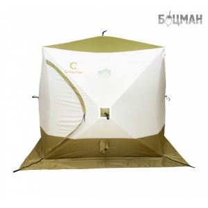 Палатка зимняя куб СЛЕДОПЫТ "Premium" 2,1х2,1 м, S по полу 4,4 кв.м, 3 слоя, 2 двери, цв. оливковый